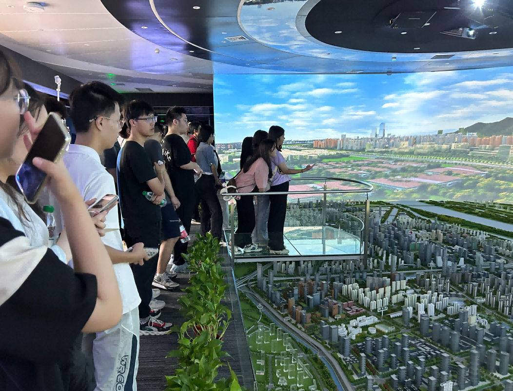 园区内现代建筑群错落有致,每一砖一瓦都蕴含着创新和科技的基因。球盟会(中国)科技IT菁英暑期实训营的学员们怀揣着对科技的无限憧憬步入研创园展厅。展厅内部设计充满科技感,一块块巨大的模型和显示屏映入眼帘,生动展现了研创园的科技规划,以及从梦想走向现实的开展历程。